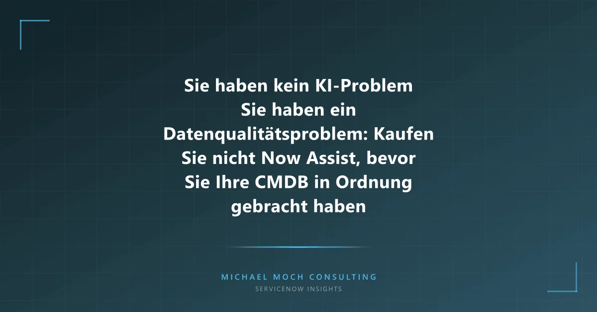 Sie haben kein KI-Problem — Sie haben ein Datenqualitätsproblem Die Demo sah fantastisch aus. Ihre Daten nicht. Sie haben die Now Assist Demo auf der Knowledge gesehen. Ein Incident wird